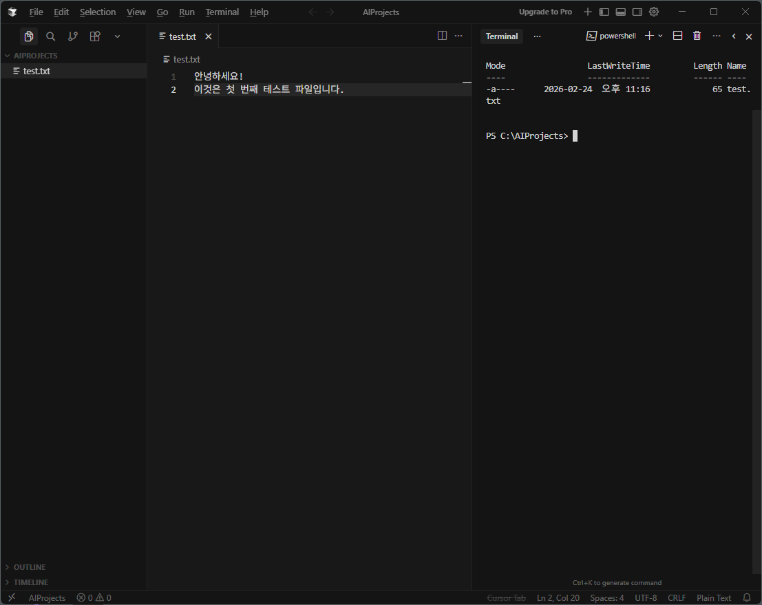 AI 터미널 도구만으로도 코드를 생성할 수 있지만, Cursor같은 IDE와 함께 사용하는 것이 훨씬 효율적이다.